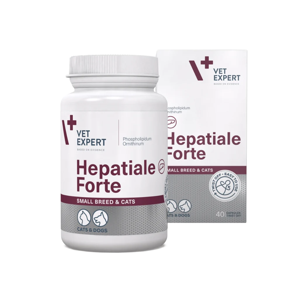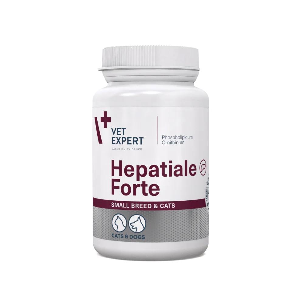 Preparation for dogs and cats recommended to support liver function in case of suspected liver disorders, as well as supportively in chronic failure . Hepatiale Forte Small Breed & Cats combines the action of phospholipids and ornithine: